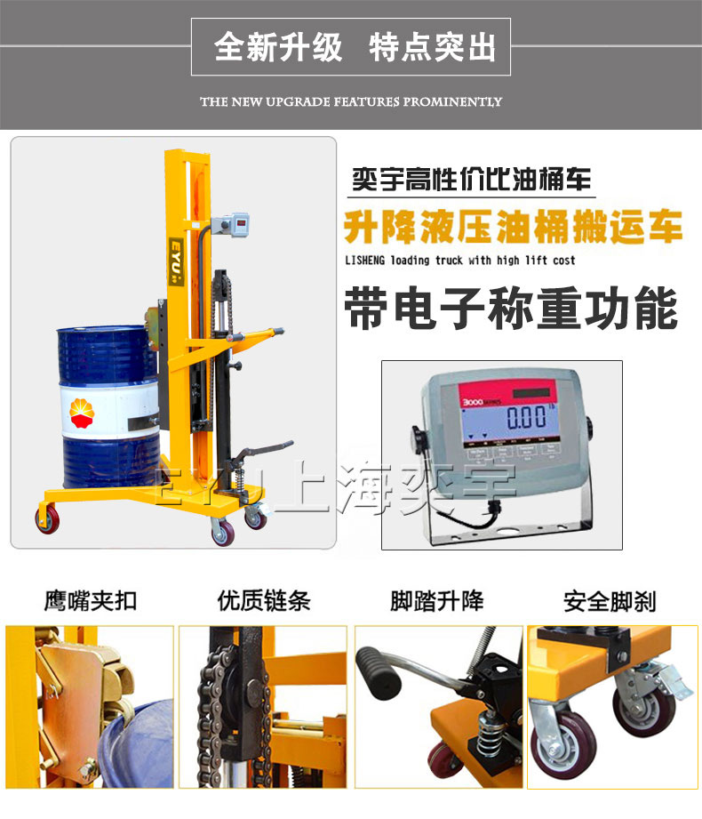 2.適用于各種桶的搬運、稱重、上下托盤裝卸等使用。