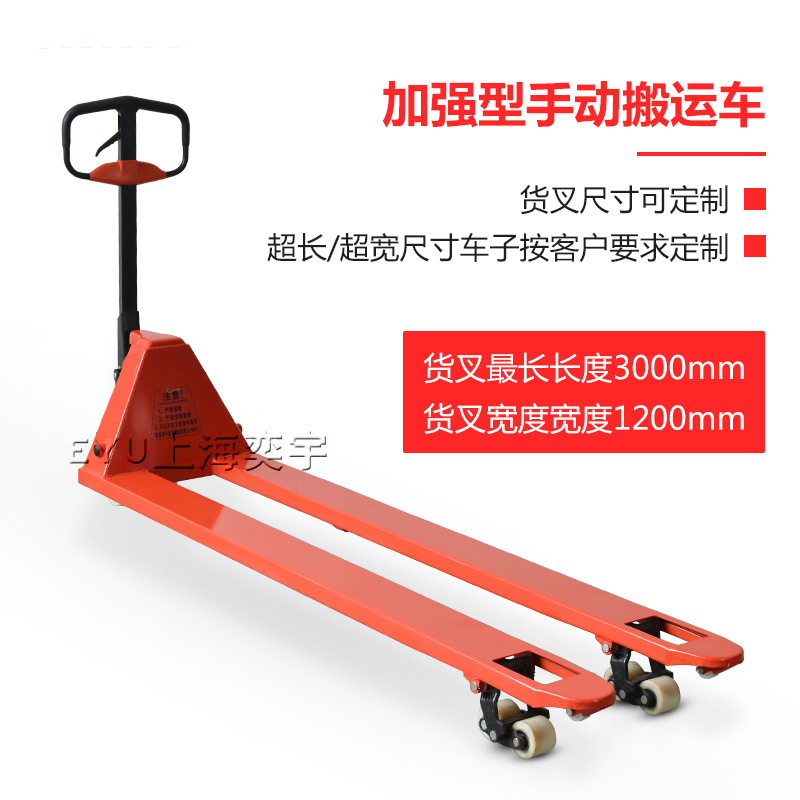 EY-DBL非標(biāo)加長(zhǎng)加寬手動(dòng)液壓搬運(yùn)車(chē)*長(zhǎng)3米 *寬1.2米;非標(biāo)定制加長(zhǎng)加寬加強(qiáng)型手動(dòng)液壓搬運(yùn)車(chē) 超長(zhǎng)、超寬個(gè)尺寸車(chē)子可按客戶(hù)要求進(jìn)行定制。同時(shí)可以按客戶(hù)倉(cāng)庫(kù)時(shí)間情況增設(shè)需要的功能,來(lái)滿(mǎn)足不同需要。