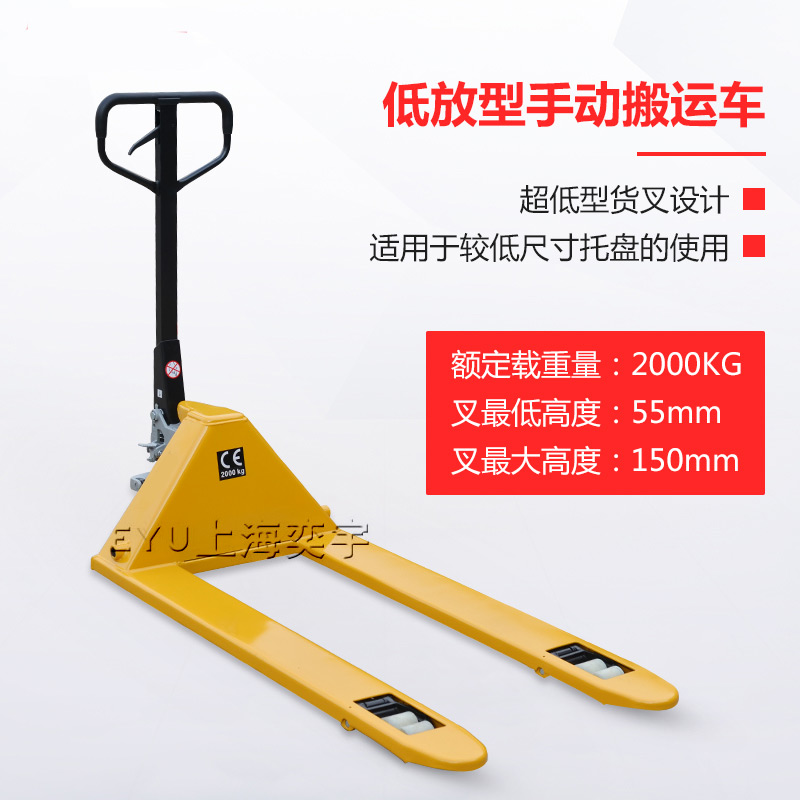 EY-HPL超低放型手動液壓搬運車,額定載重1噸和2噸,*低高度是36mm和55mm;