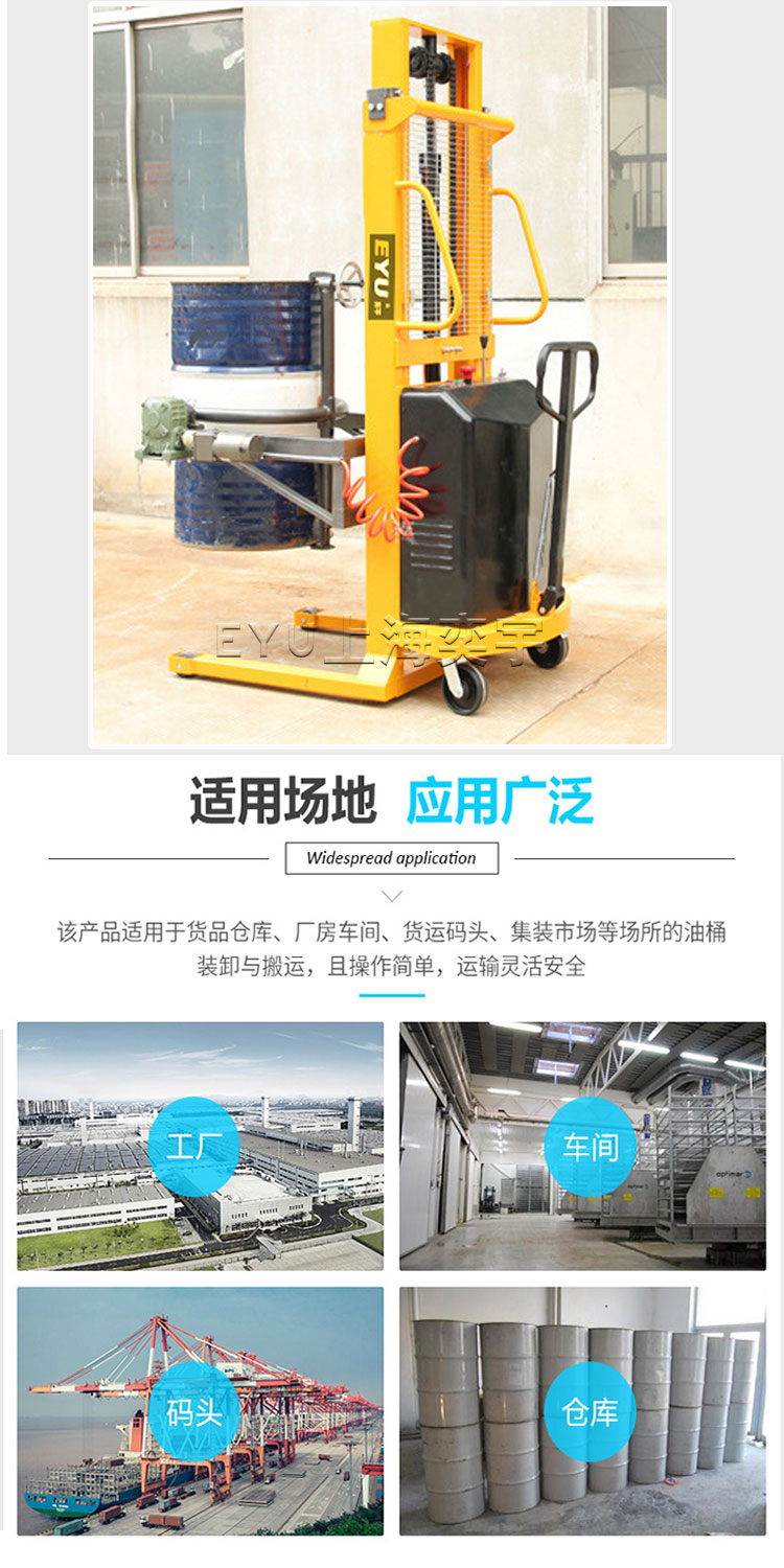 1.選用優(yōu)質(zhì)液壓泵站,動力強(qiáng)勁,免維護(hù)電池,電力持久。2.油桶翻轉(zhuǎn)車設(shè)計結(jié)構(gòu)簡單輕巧,抱箍式結(jié)構(gòu)適合鋼制油桶和塑料油桶,叼扣式結(jié)構(gòu)適合鋼制油桶,操作簡便省力。3.適用于化工、食品車間、染料、涂料、膠黏劑、石油、食油等流質(zhì)、液體的搬運,裝卸、倒料等使用。4.抱箍式與叨扣式一體,電動翻轉(zhuǎn)。