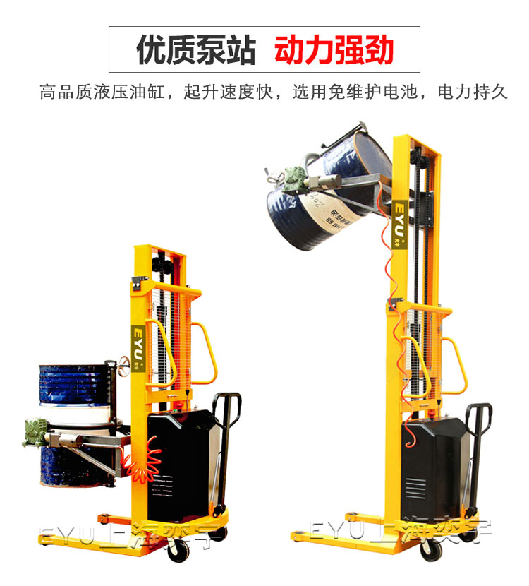 EY-YYL450鐵桶用電動倒桶車2節(jié)門架功能: