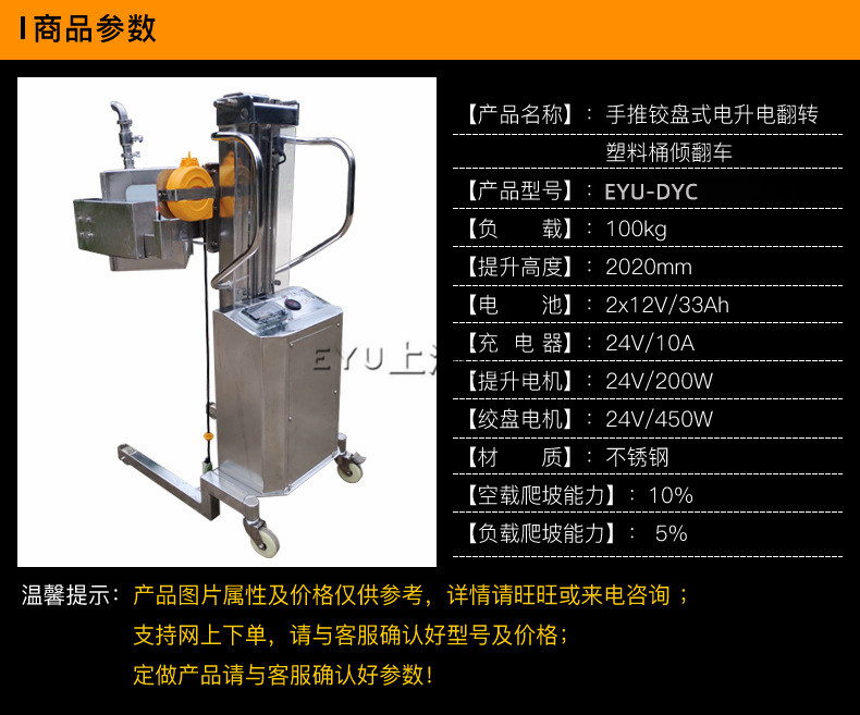絞盤式電升電翻轉方型塑料桶不銹鋼倒料車