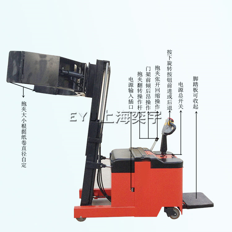 全電動(dòng)紙筒夾抱翻轉(zhuǎn)車配置: