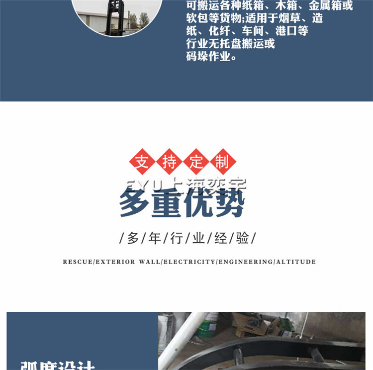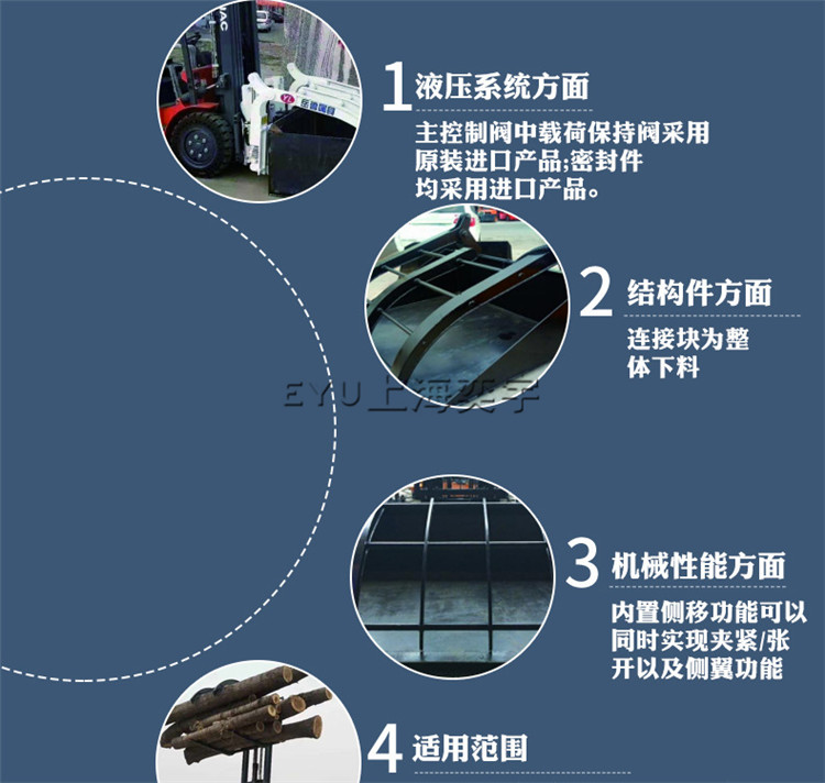 主要應(yīng)用于各種散裝貨物的搬運、裝卸,實現(xiàn)無托盤作業(yè)。如廢紙回收、造紙廠、廢金屬回