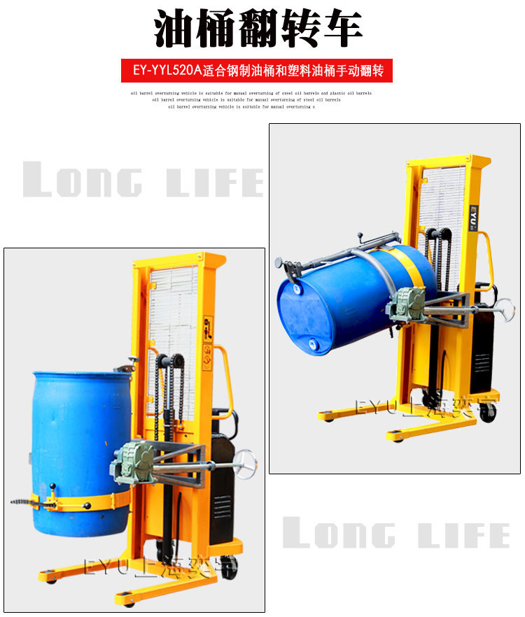 EY-YYL520A油桶翻轉(zhuǎn)倒料車功能: