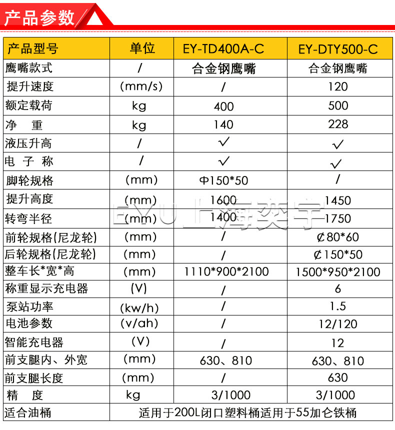 3.叼扣式鷹嘴結(jié)構(gòu),適合鋼制油桶和塑料油桶,高質(zhì)量油缸,起升高度能達(dá)到1600mm