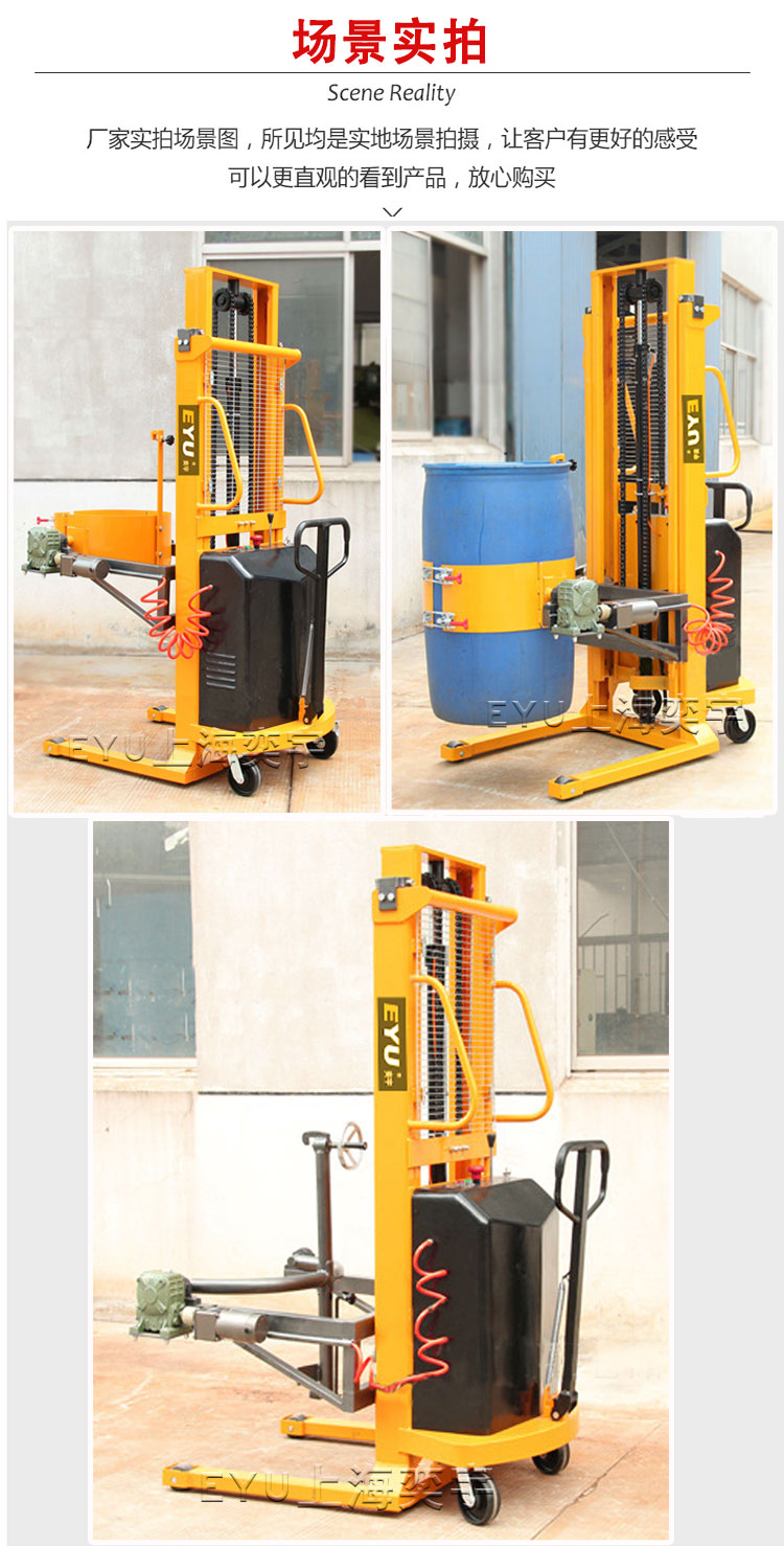EY-YYL450塑料桶電動翻轉(zhuǎn)倒料車2節(jié)門架功能: