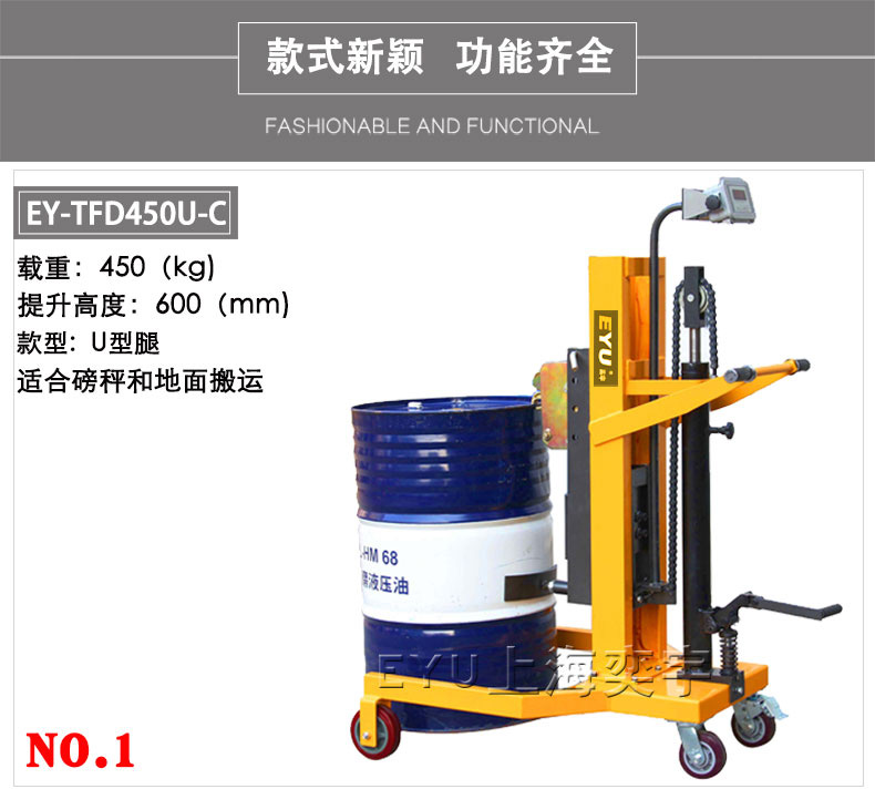 EY-TFD450系列稱重油桶搬運車功能: