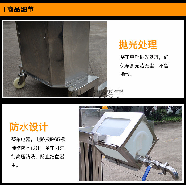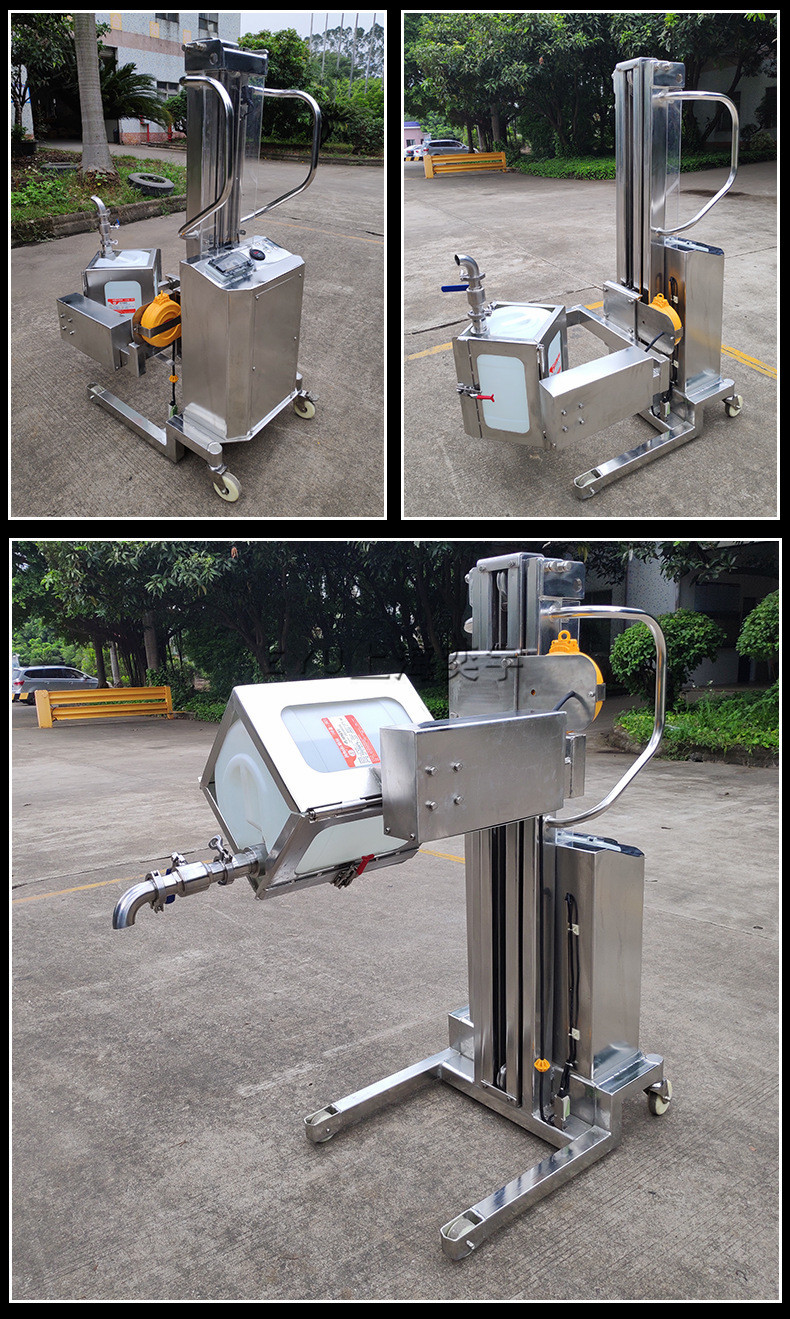 絞盤式電升電翻轉方型塑料桶不銹鋼倒料車