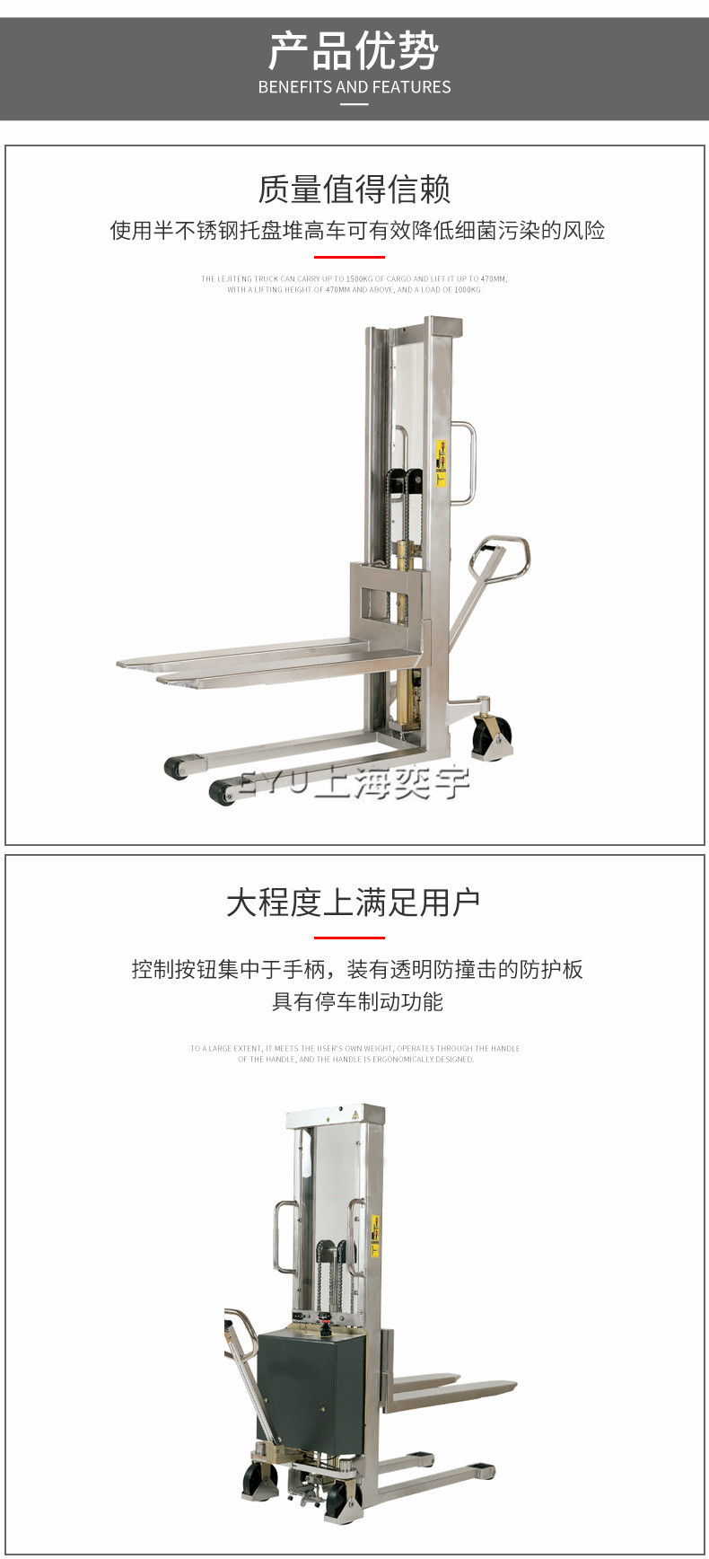 不銹鋼款手動液壓堆高車特點(diǎn):